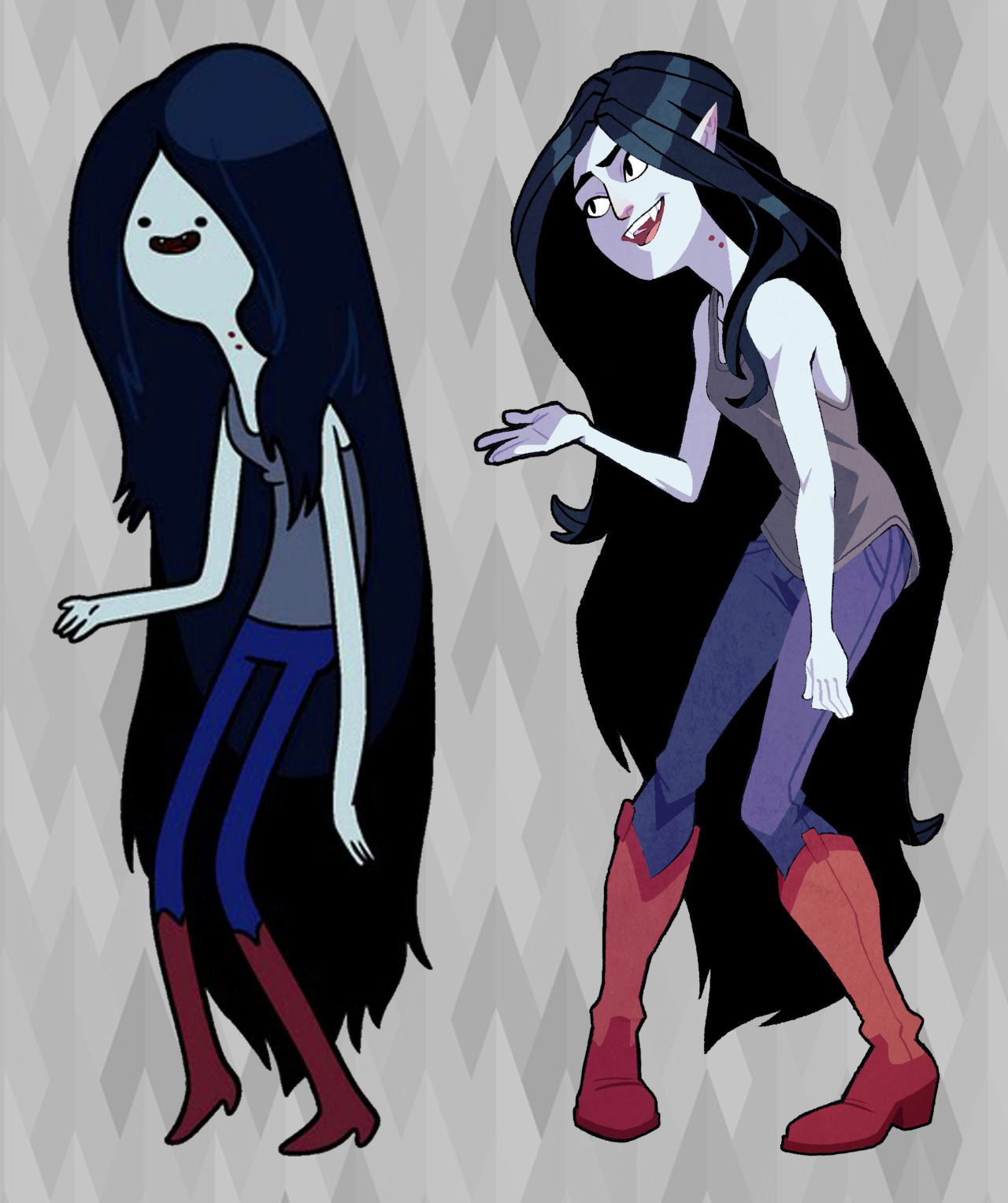 O traço estilizado dos personagens nos cartoons é sempre uma característica que da o corpo da animação e permite uma agilidade na produção do desenho. É legal que exista o “estilo hora de aventura”, o “estilo meninas super poderosas” e assim por diante. Por outro lado, é comum que a gente queira imaginar como seriam esses personagens com um estilo diferente, as vezes mais realista.