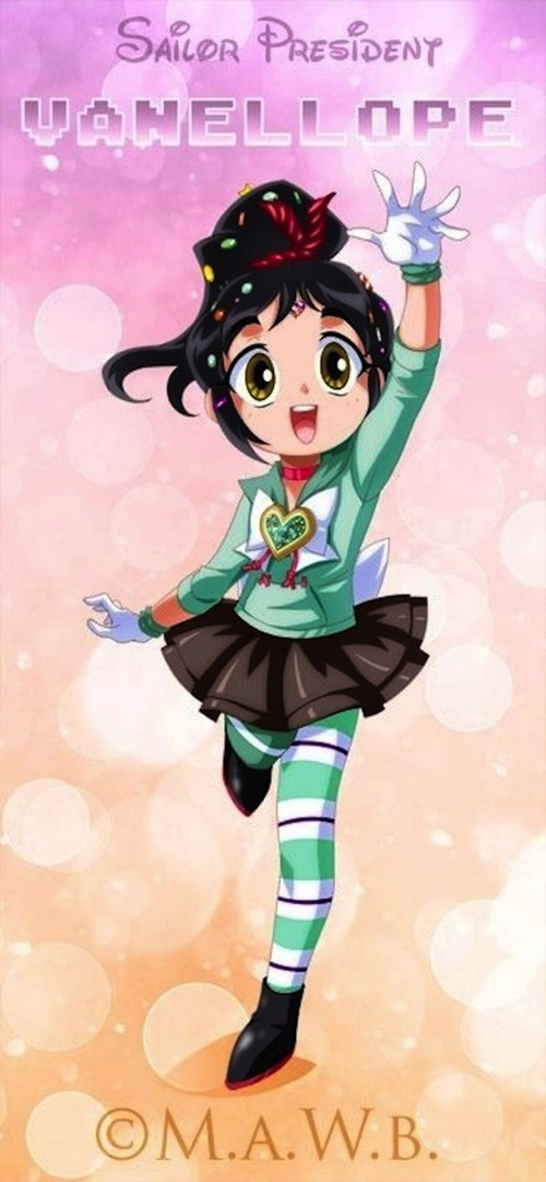 Gostei muito da Vanellope e da Alice,que continuaram com um tom mais infantil. A Ariel também.