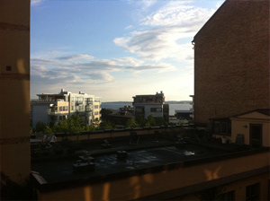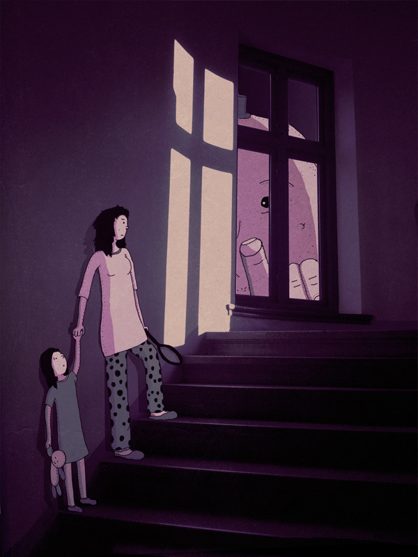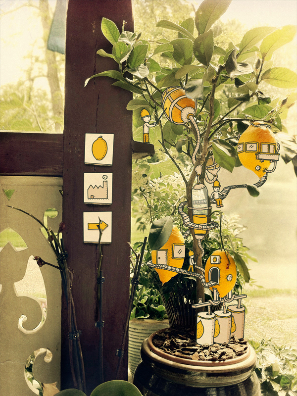 Gostei muito das artes do cara. Tem uma simplicidade, uma suavidade que me agradam muito. Essa onde tem uma baleia no meio da rua é lindíssima. A do cara gigante na janela é incrível também. Gosto bastante também da foto da banheira e da xícara. Essa do limoeiro que é muito legal também.