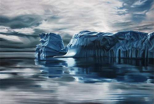 Passando rapidamente como um Viking bem barulhento (e essa piada é preconceituosa por que eu nem sei se tem Vikings na Groenlândia, imagino que sim, já que é no norte e é frio, e nem sei se eles eram todos barulhentos), para mais um post de arte. Encontrei esses dias o trabalho de uma artista chamada Zaria Forman, que faz ilustrações inacreditáveis de paisagens.