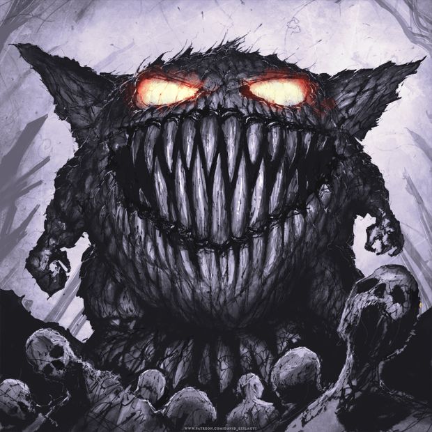 Visite a página do artista que tem muitos outras ilustrações legais e ele tem um Patreon também se você quiser ajudar ele a criar mais Pokémons sinistros.