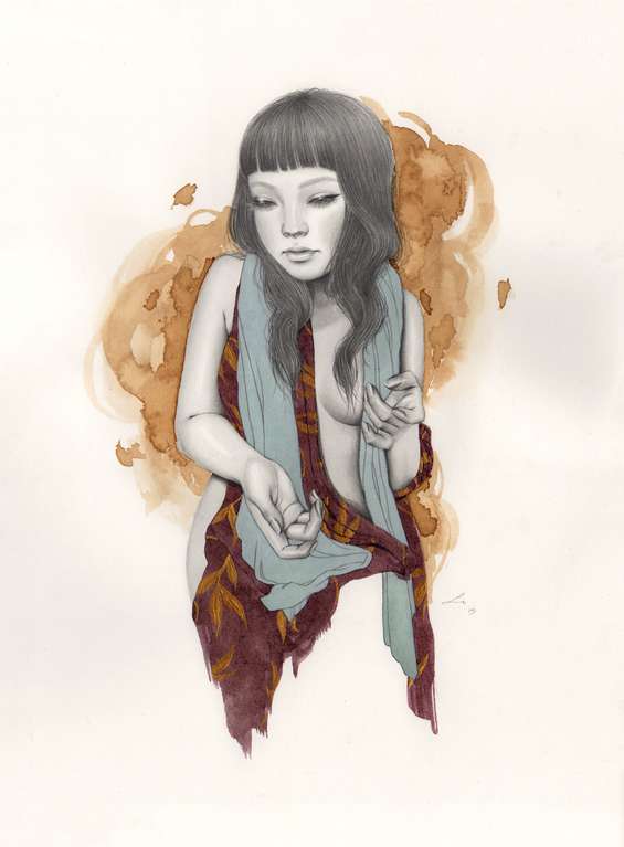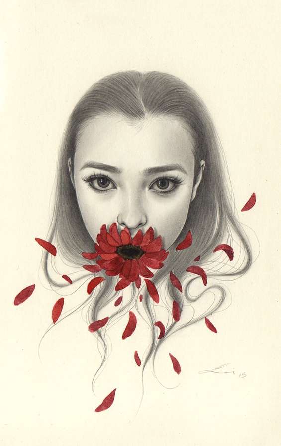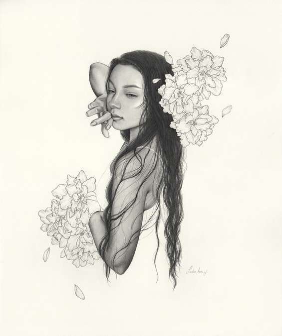 Eu não consegui encontrar muita informação da artista, mas vamos falar do trabalho dela que é o que interessa. A Sasha Ira (que tem um baita nome legal, temos que concordar) foca bastante na ilustração da figura feminina, mais especificamente em mulheres jovens. A jovialidade e a beleza da juventude, unidas a elementos belos na simplicidade, como flores, formam a obra dela, que parecem simples, mas são bem complexas nos detalhes e no realismo.
